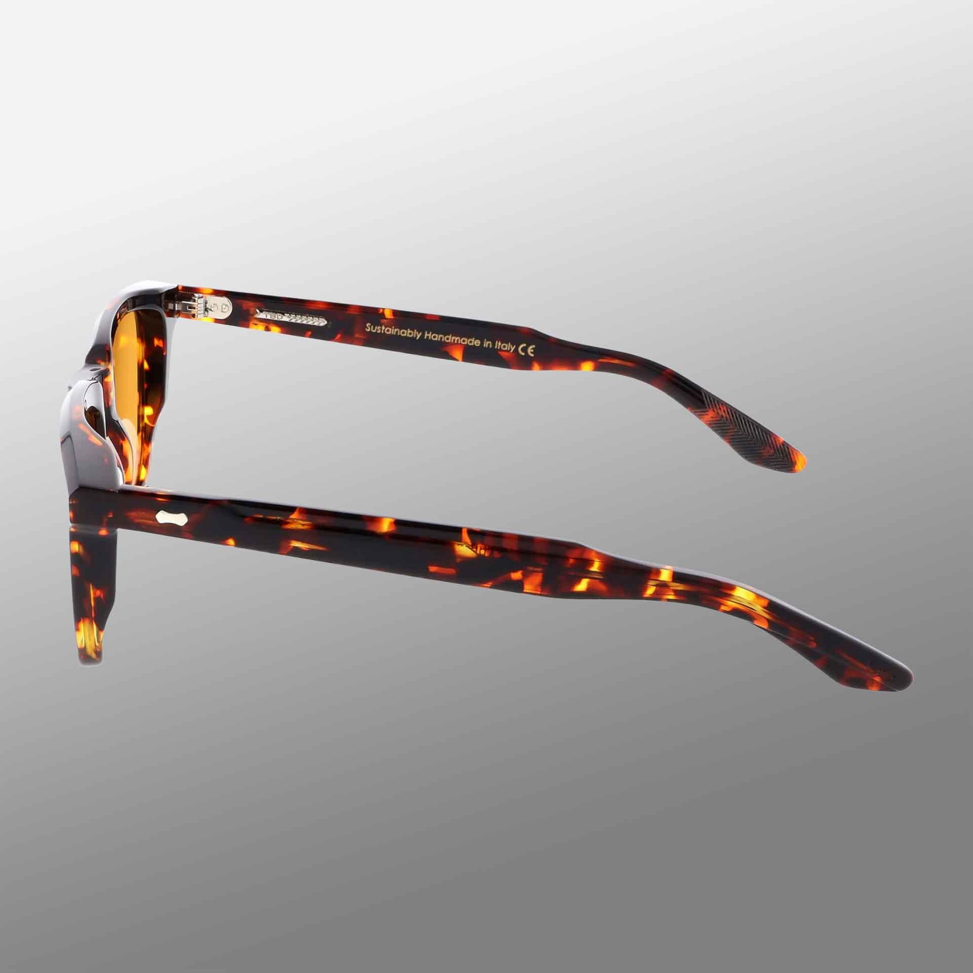 - Rich dark havana frame with orange lenses